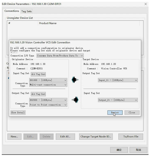 2.把对应的PLCEIP模块和VC5加入网络,如果同时链接多个读码器,同时加入对应的个数。