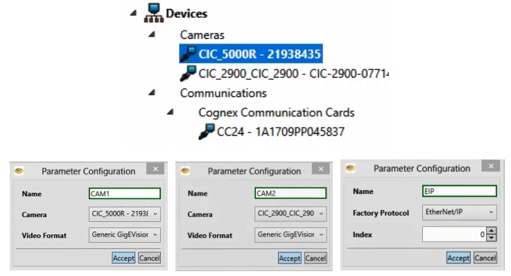 2.配置好Devices中的Cameras和CommunicationCardsCC24。