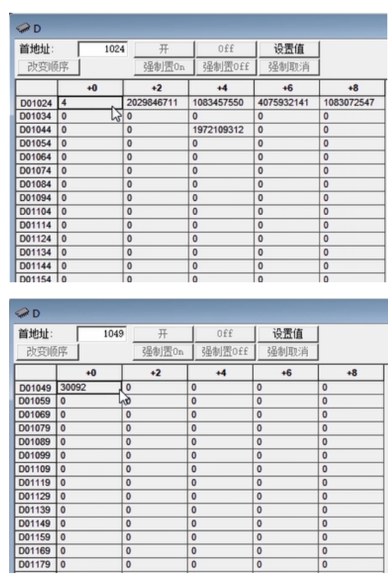 上表对应PLC内存中自D2000起的区域,代表“controlsignalsaresentFROMthePLCtothevisionsystem”。