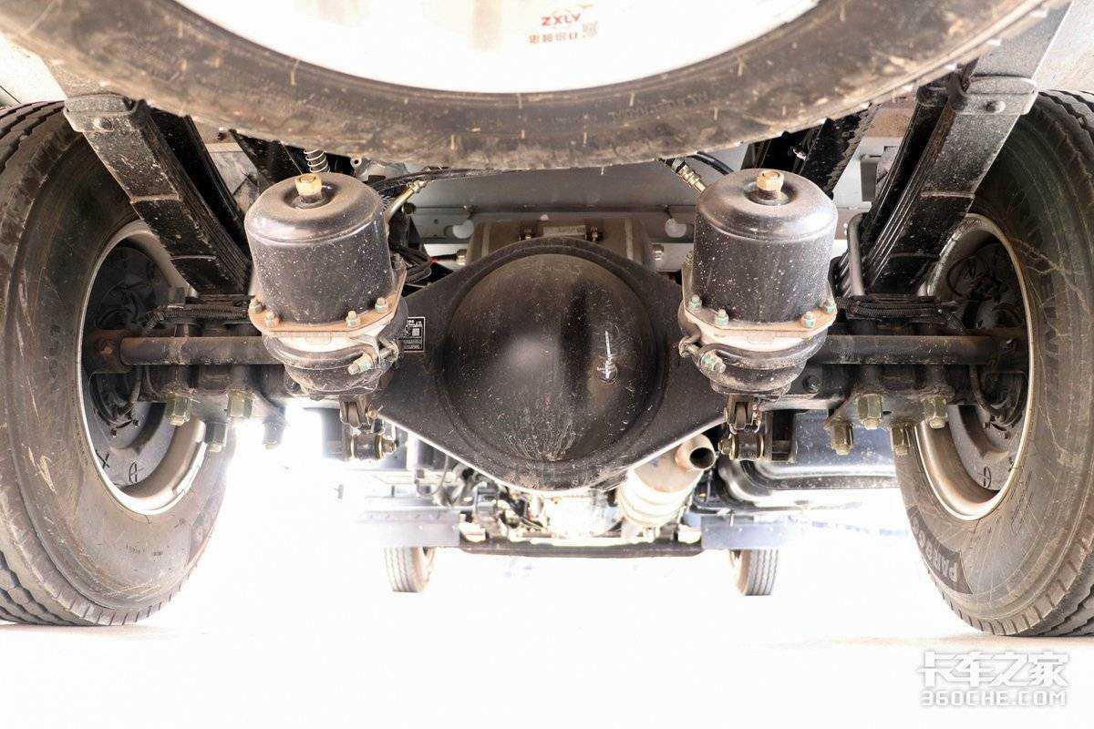 在底盘方面,实拍车型采用前后钢板悬架设计,前3后5+2的片数设计能够很好地满足日常运输散杂、百货等一系列货物。同时玉兔二号的后桥采用4T级设计,后桥速比为4.33,也可以选择手动变速箱以及其他速比的后桥设计。整体来看,除了尺寸需要适应一下之外,得益于AMT变速箱的加入,这台玉兔二号驾驶起来和自动挡的乘用车几乎没有区别。