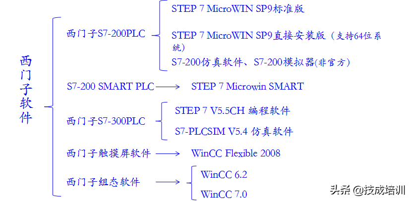我们除了用三菱外,西门子用的是最多的,西门子不同系列的PLC用不同的编程软件,除了博途软件外,博途软件可以同时用于S7-300,S7-1200,S7-1500的编程,但是博途软件非常大,只学一种系列不推荐使用博途,还是安装单一的软件方便。
