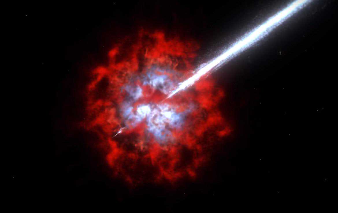 这就意味着,以这种极端速度旋转的恒星,当燃料耗尽时,两极会先于赤道坍缩,从而形成狂暴的伽玛射线暴——宇宙中最暴力的爆发现象,1秒钟就可释放出100个太阳100亿年所能释放的能量总和。1997年12月14日,距地球120亿光年处曾发生过一次伽玛射线暴,爆发后一两秒钟,亮度就和除它之外的整个宇宙一样明亮,50秒内释放的能量相当于整个银河系恒星200年辐射能量的总和,在其附近几百公里的范围内,再现了宇宙大爆炸后千分之一秒时的高温高密情形。而一年多以后的1999年初,另一次伽玛射线暴则比它还要再猛烈10倍。