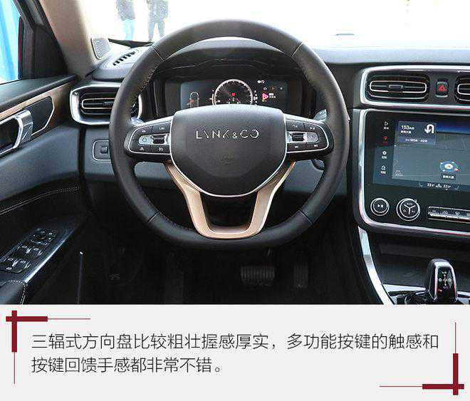 领克01全系标配10.25英寸全液晶仪表盘,拥有三种不同的主题模式。从显示效果来看,这块仪表盘的分辨率很高,数字模拟的指针响应速度很快,并且在最右侧区域可以分别调整以显示车辆状态、音乐和导航界面,方便驾驶员在驾驶过程中的达到高度集成性。