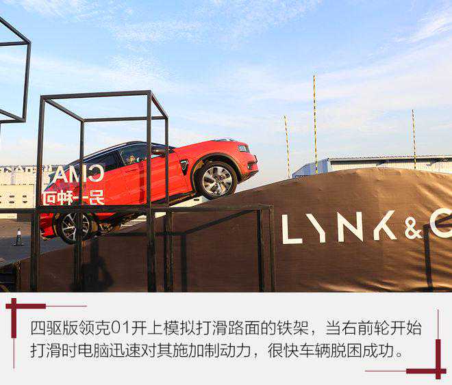 领克01四驱版车型配备的是瀚德最新的电控四驱系统,电脑能够快速检测到打滑车轮并对其施加制动力,并将动力传递至有附着力的车轮,让其他有抓地力的车轮能够稳定的保持住车身姿态,最终成功快速的通过打滑路面实现车辆脱困。