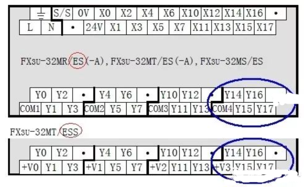 D和E后面两个S表示输出为源型输出即输出的公共端+V口接24V(晶体管型),输出为24V,要驱动电器元件要配一个对应的0V;