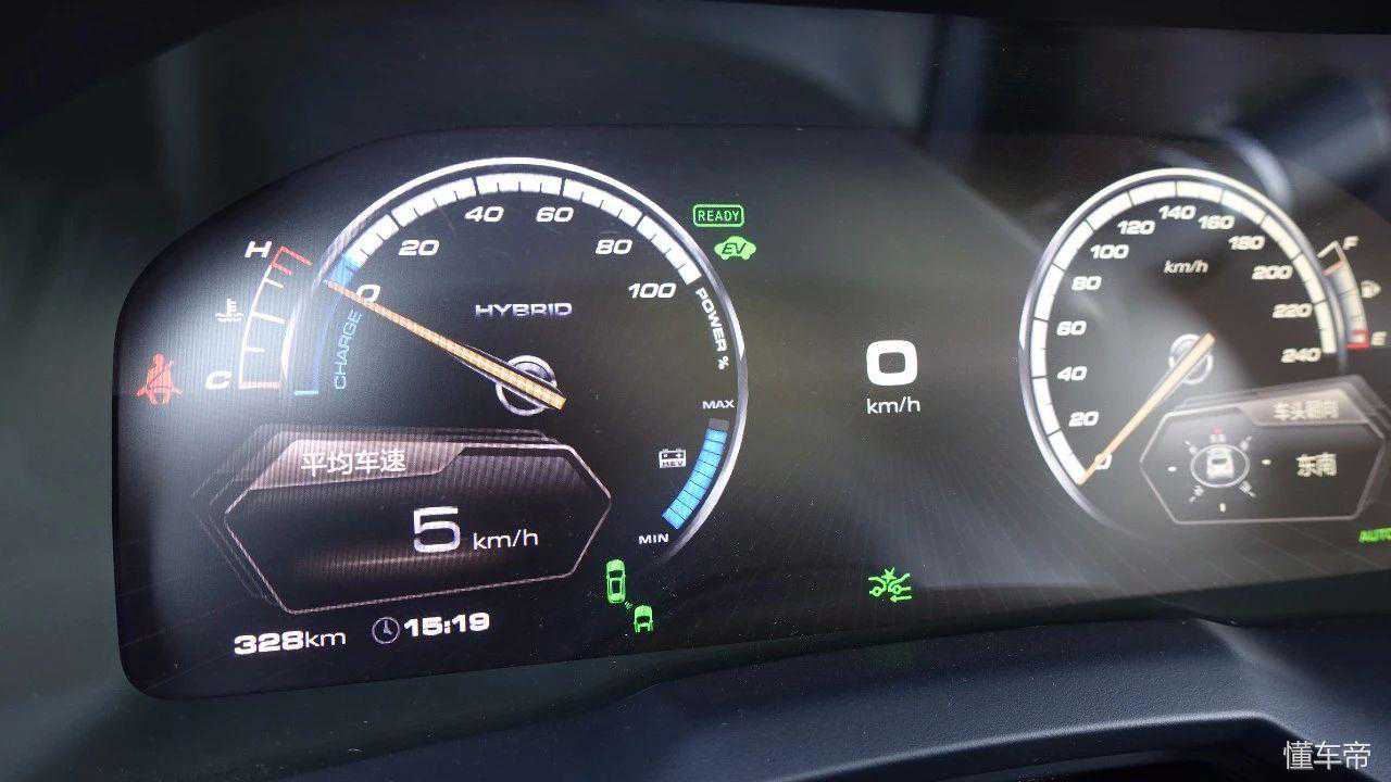答案是:它全液晶仪表的UI人机交互界面,Charge条(也就是动能回收)的设计。这个Charge条的摆幅特别特别小,无论是滑行减速的动能回收,还是踩刹车踏板的动能回收,几乎都一动不动,而且就算动了,它也没有绿色的刻度填充条,非常的不明显。