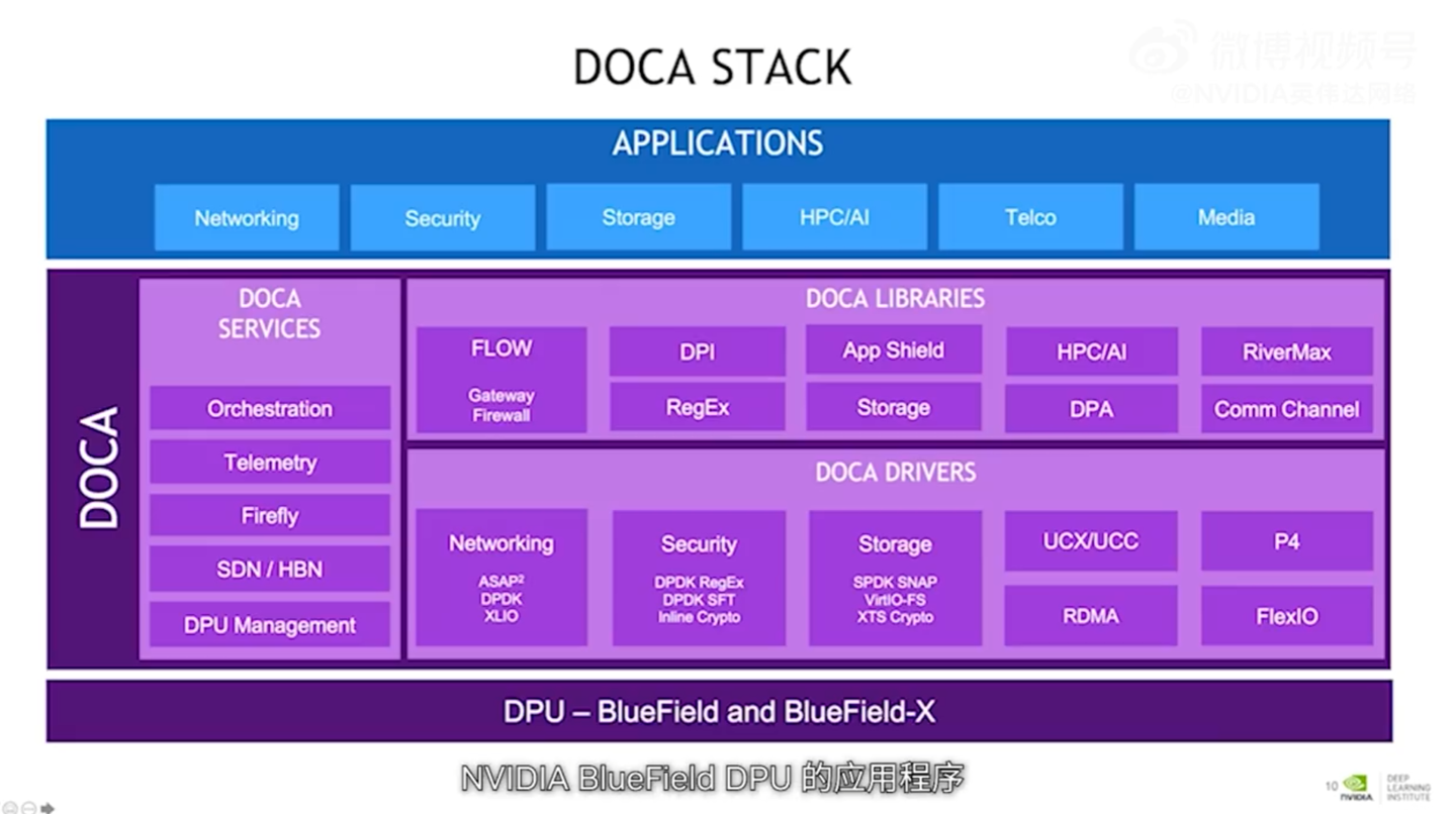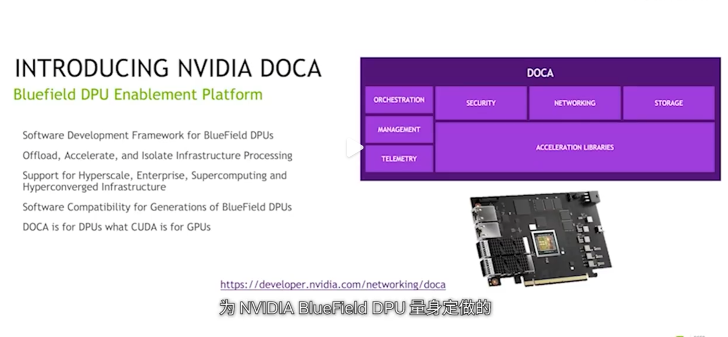 英伟达同时声称,DOCA开发环境是为BlueFiledDPU量身定做的软件开发平台,让开发者可以快速创建DPU加速的高性能应用程序和服务。