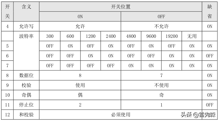 果同时设定波特率为19200,则开关1的16进制数值为07E6;