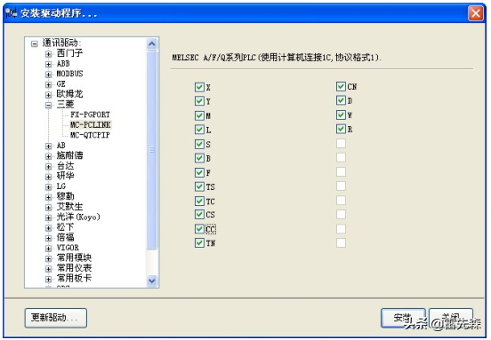 MC-PCLINK驱动支持三菱A/F/Q系列可编程控制器;
