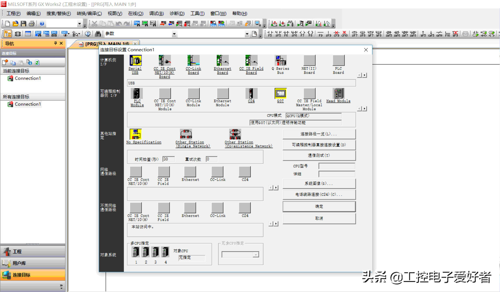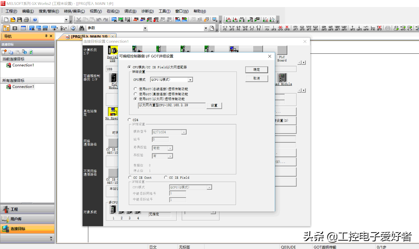(5)GOT与可编程控制器间以CC-LinkIE控制器网络连接