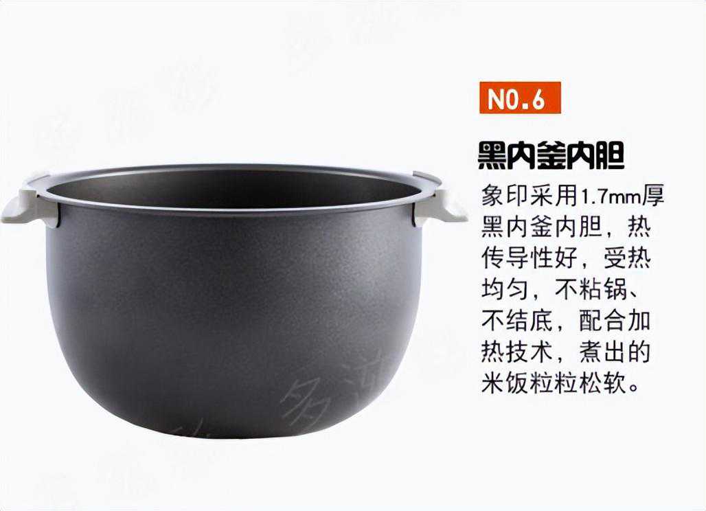 象印电饭煲的内胆材质是黑内釜,仅1.7mm,是3款里最薄的,理所当然,它的热传导性也最好。但米饭好不好吃,跟内胆薄厚其实没那么大关系,全方位受热才更重要,过薄的内胆在循环受热方式下,可能导致局部温度过高而糊底;且由于涂层太薄不能大力清洗,虽拿取轻松,但清洗要小心翼翼,破坏涂层可得心疼坏。
