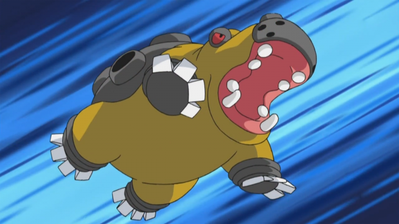 河马兽作为低速PM种族值和却达到了525,而且物耐出色,物攻够用,特耐也不差,甚至特攻也迷之接近了70,沙之力大地力理论上还有不错的输出,由于本身是纯地面属性,只是二倍弱冰,于是挡只有觉冰的电系还是非常靠谱的,但是河马兽属于低速盾,所以压血大法效果十分不错,毕竟河马兽有着明显的水草弱点。特性一般当然是扬沙,除非你不想给队友放沙暴那就用白板沙力,但河马兽站场实力不错,一个外挂沙暴对破腰带以及对攻磨血还是很有帮助的,下场后沙暴一般也剩不了几回合了。