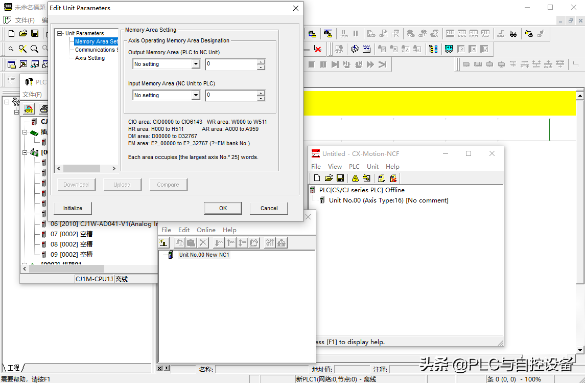 对于总线单元“CJ1W-NCF”,右击它,选择“启动专用的应用程序”→“继承设定启动”,将调出NCF单元专用设定软件“CX-Motion-NCF”。