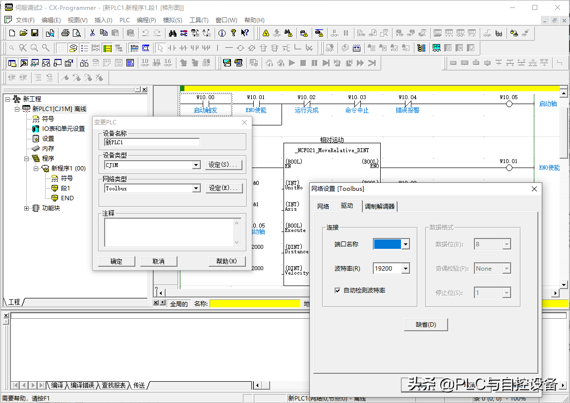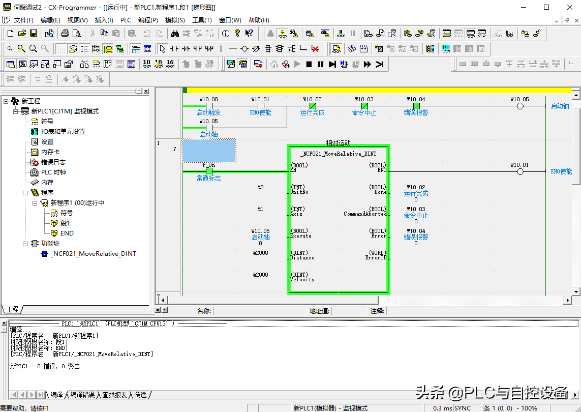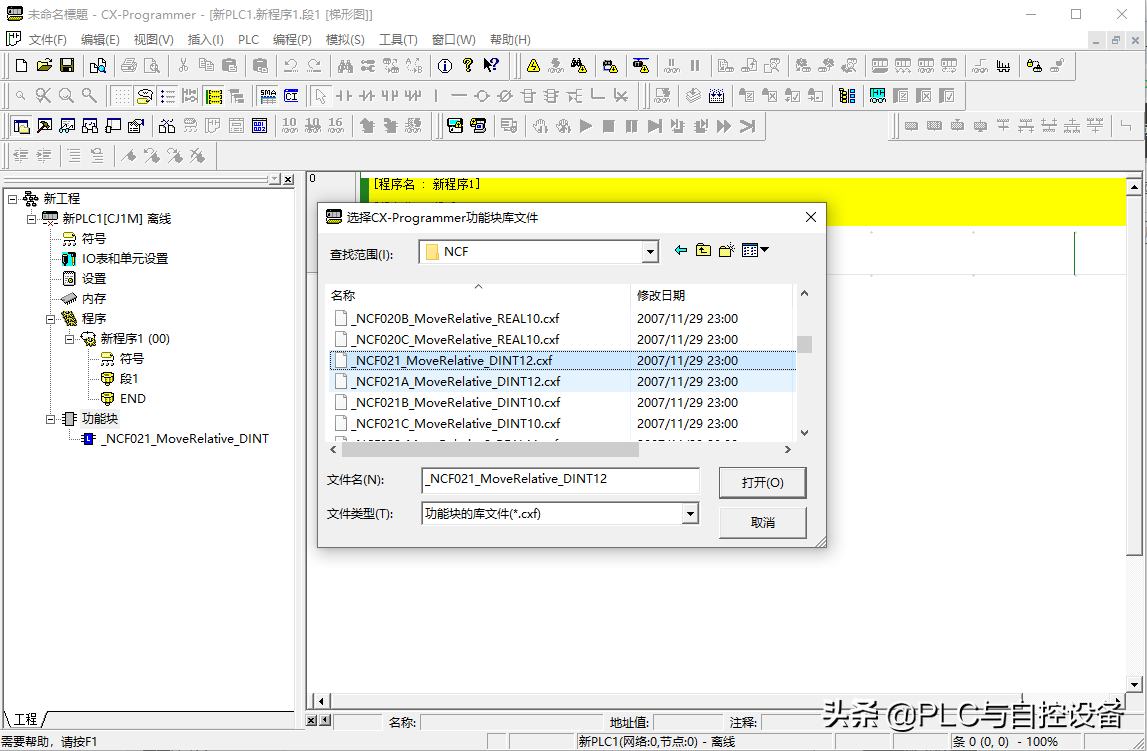 选择“omronlib”→“PositionController”→“NCF”→“_NCF021_MoveRelative_DINT12”→“打开”。功能块在项目树下就生成了可调用的功能块。