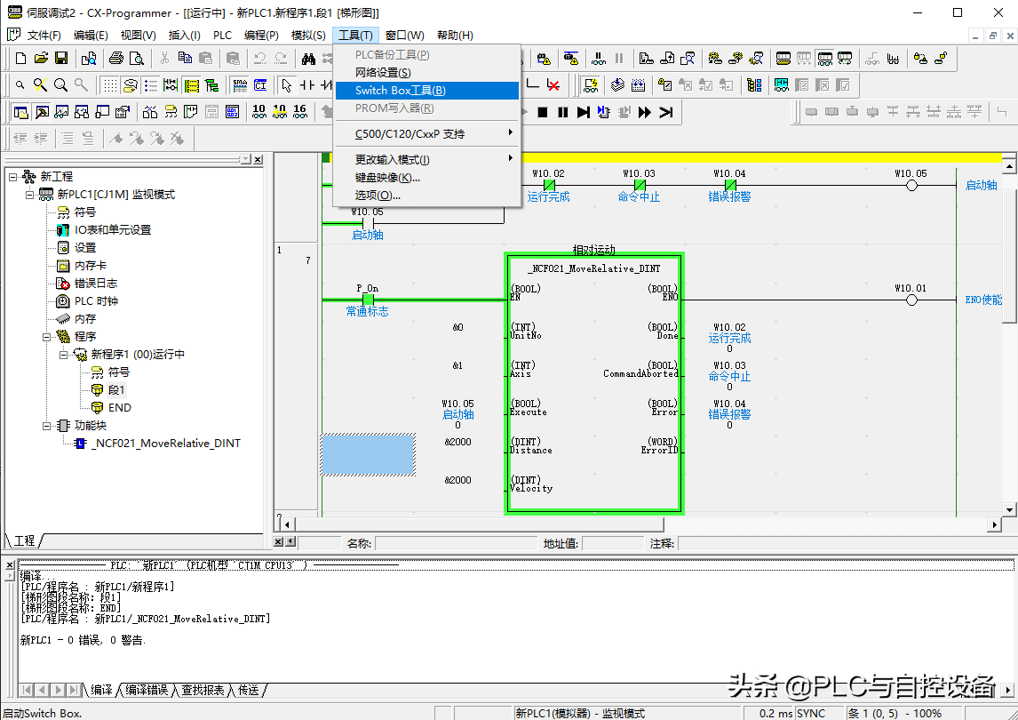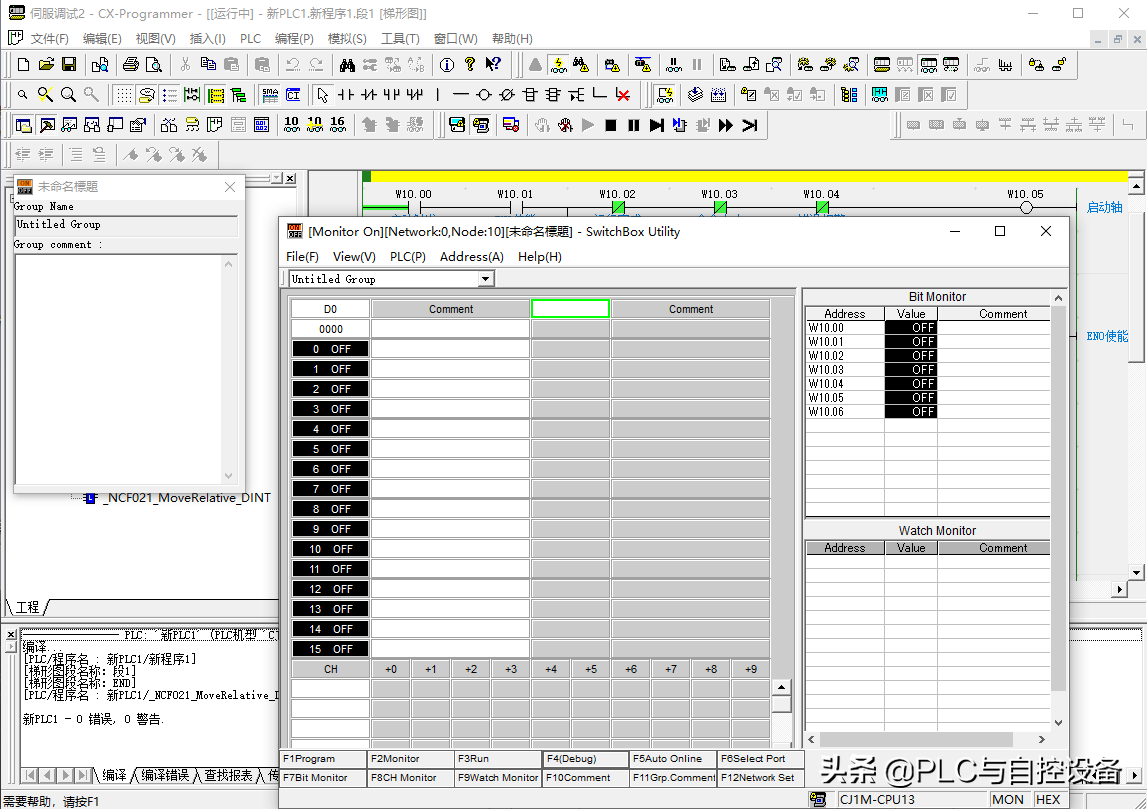 3、在“SwitchBox工具”中设定需要监视的软元件,进行调试。