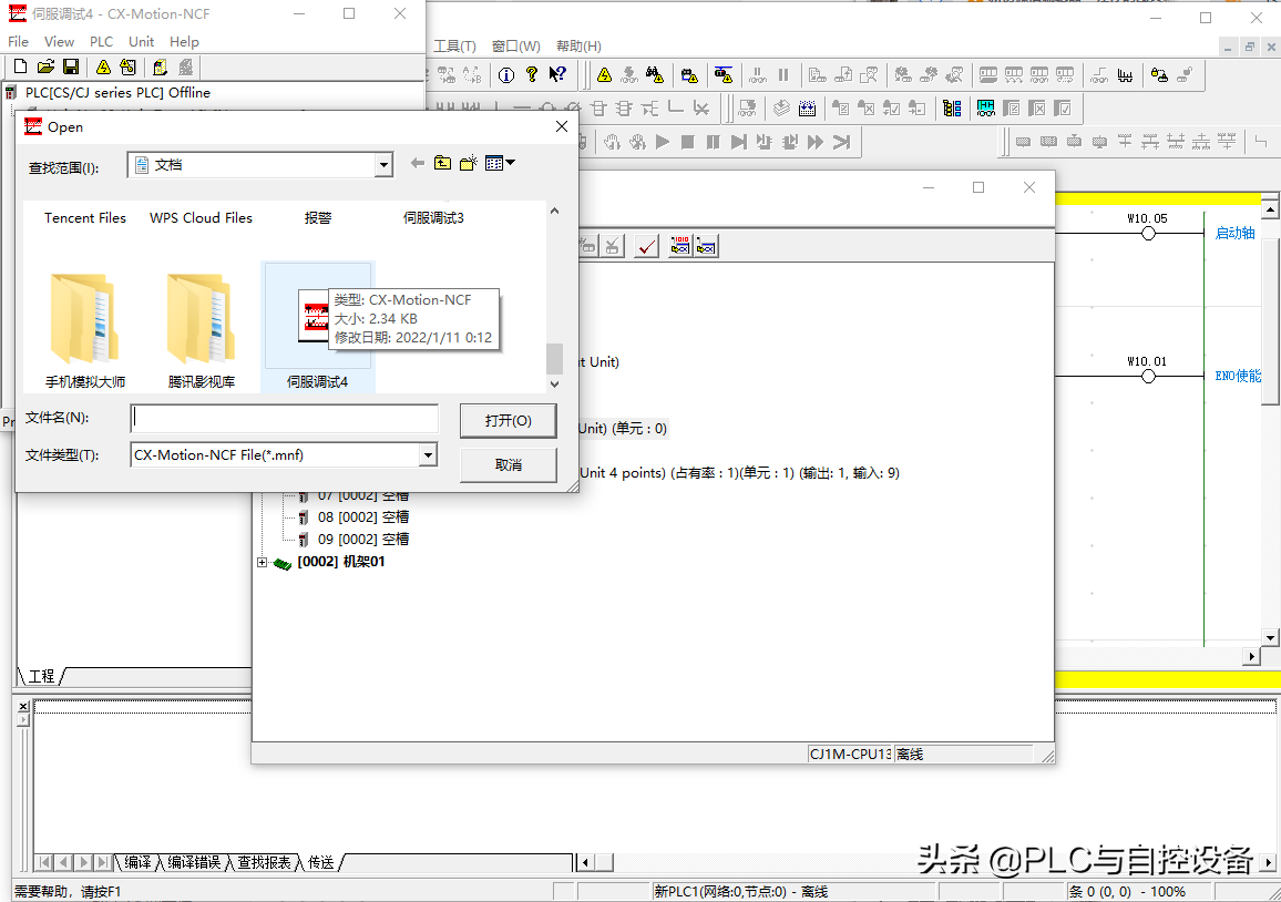 在“CX-Motion-NCF”软件中,打开所保存的NCF单元参数文件。