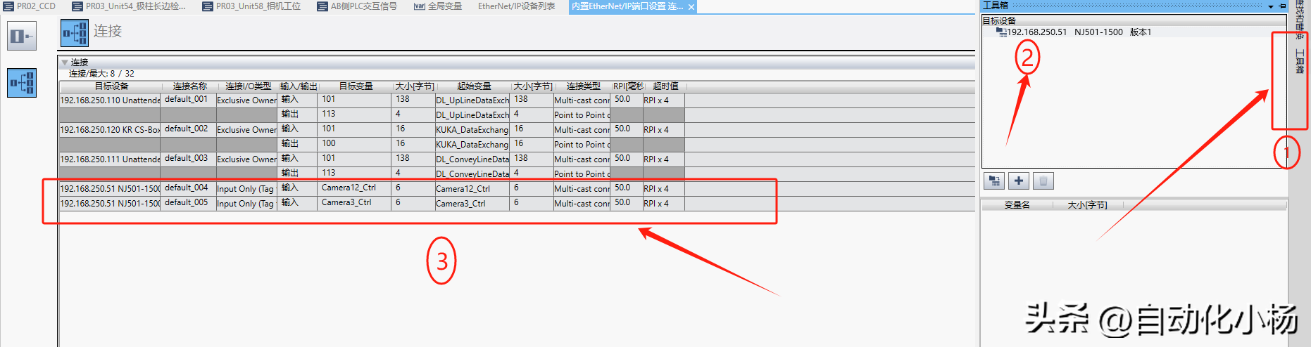 添加链接的时候找到要连接的PLC的IP地址,导入注册的变量表,当双击选择好之后就直接导入下载到PLC里面,完成链接,控制的时候我们要记住的是,来自对方的IP输入变量为控制的一方,简洁的讲就是: