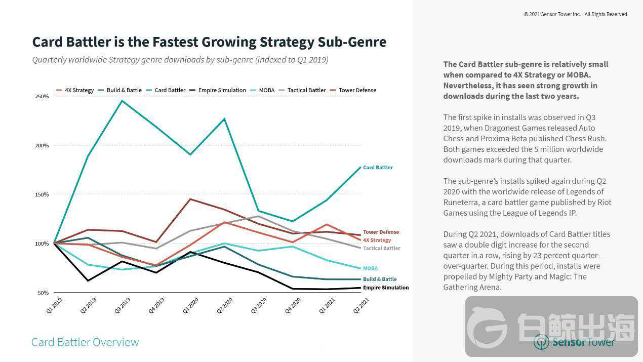 本文编译自SensorTower’sStateofCardBattlerMobileGames2021Report:DownloadsRiseby23%inQ2astheFastest-GrowingStrategySub-Genre。
