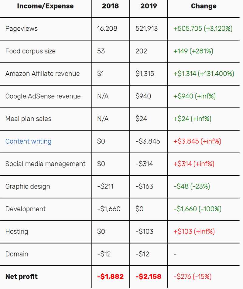 IsItKeto同时也是我最大的支出项,因为我将大部分内容写作都外包出去了。这部分钱我花的过多了,因为我对如何招聘以及管理写手一无所知,但是这此经历教会了我很多,并导致我写下了《招聘内容写手指南》这篇得到了大家广泛无视的文章。(笑)