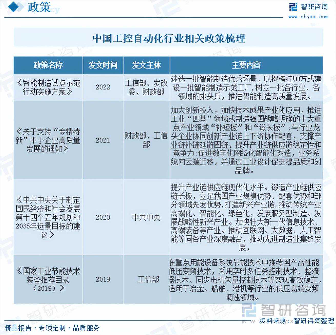1、国家产业政策大力支持工业自动化控制系统行业、智能制造的发展