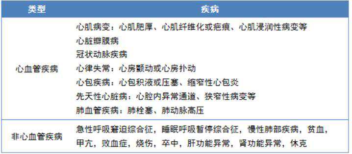BNP和NT-proBNP升高,主要原因为心血管疾病,如心肌病变、心脏瓣膜病、冠心病、心律失常、心包疾病或先天性心脏病等,还可见于其他非心血管疾病,比如呼吸科、内分泌科或肾脏科疾病等。