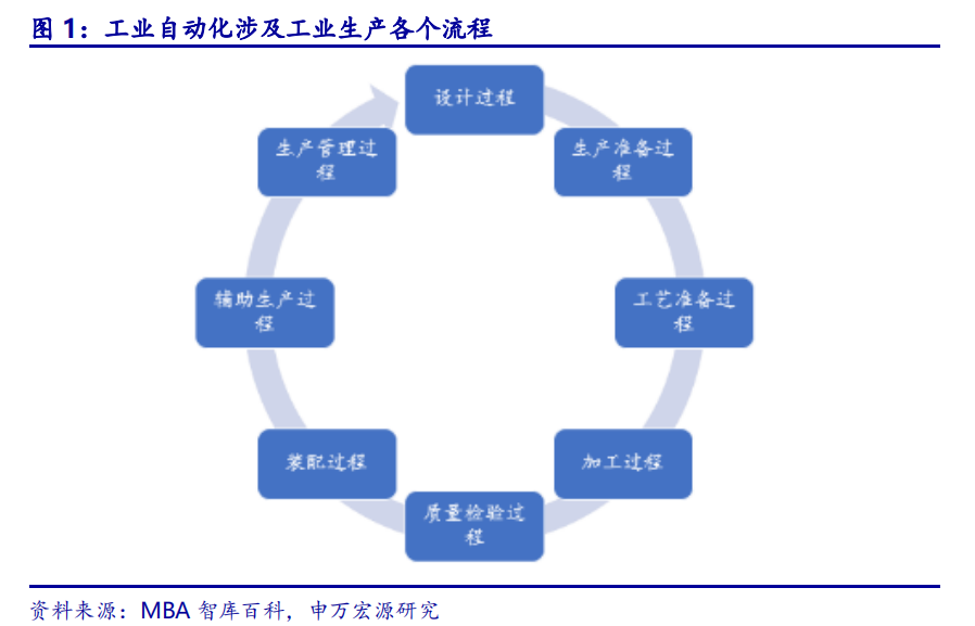 工业自动化的根本目标是提升全要素生产率,现阶段的主要方式是通过替代人力解决效率提升的瓶颈。工业自动化可以为生产者实现全要素生产率的持续提升,带来经济效益,而在现阶段的工业自动化生产环境中,生产者主要通过自动控制装置及自动执行机构以协调各工序设备,实现机器自动化生产,从而打破人力生产效率瓶颈,实现自动化革新目的。