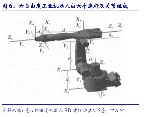 六轴工业机器人可以实现多自由度的运动,模拟人类实现物体转动与位移。机器人的自由度由其可沿轴的直线移动、摆动或旋转动作的数目表示,自由度越多就越接近人手的动作机能,通用性就越好。目前在工业领域中以六轴机器人应用最为广泛。六轴机器人与人类手臂极为相似,它可以拿起一个对象,并移动将其放置在空间特定位置,同时还可以任意改变对象位姿状态,进行偏航、俯仰和横滚操作。
