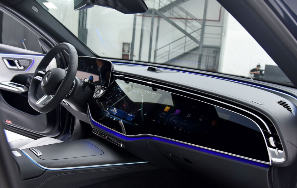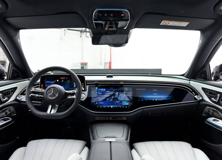 再来便是新车的内饰部分,国产全新一代奔驰E级的内饰布局采用了最新的家族式设计风格,不过值得一提的是,新车采用的是悬浮式仪表盘,虽不是整体的三联屏设计,但是该仪表盘配备了裸眼3D功能,结合升级后的车机系统,可为用户带来更为智能,丰富的使用体验。