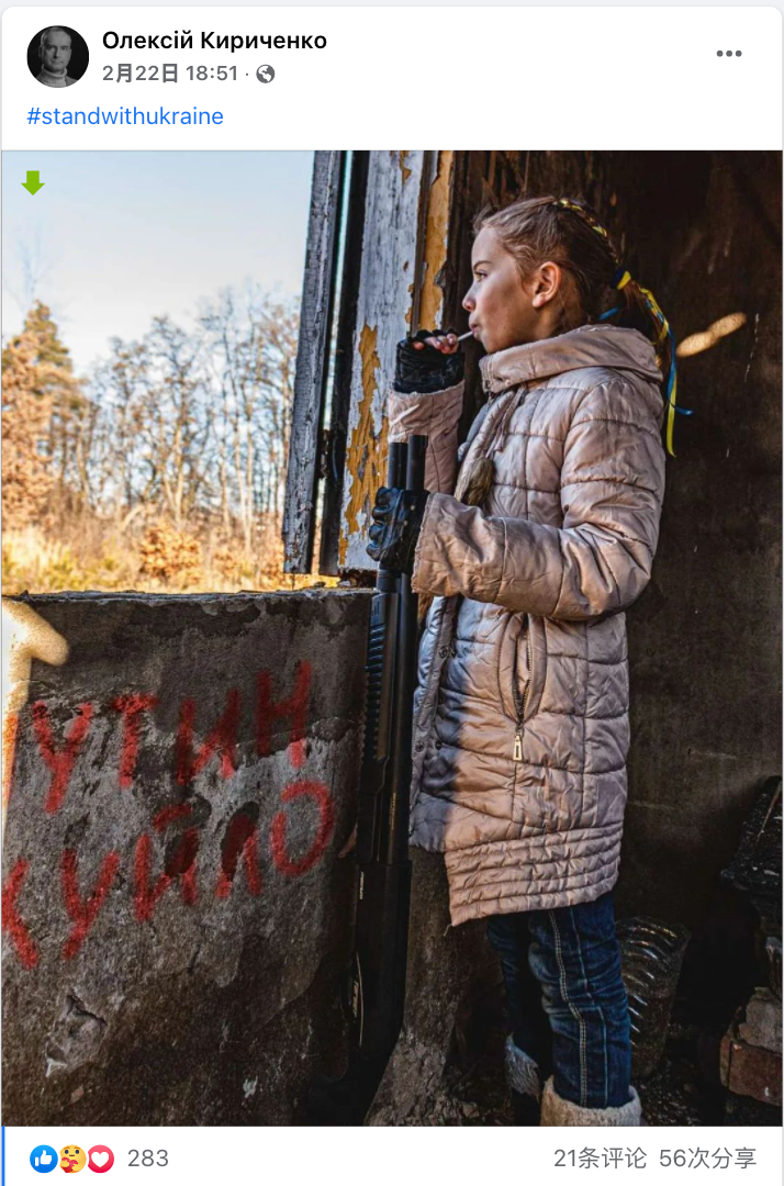 3月11日,这张“女孩与枪”的照片为唐纳德·图斯克(DonaldTusk)所转发。图斯克曾于2014-2019年担任欧洲理事会主席,2007-2014年担任波兰总理。在相关的脸书状态中,图斯克并未对该照片拍摄的背景加以说明,因此造成一定误解。