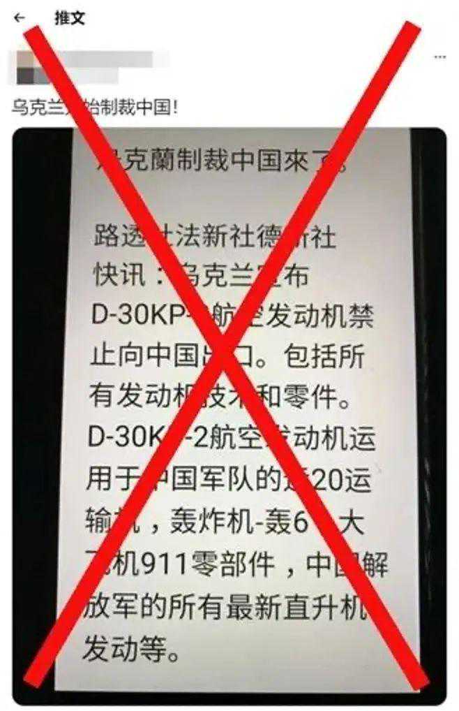 俄乌开战以来,中文网络流传一则消息称,据路透社、法新社、德新社报道,乌克兰决定制裁中国,宣布禁止D-30KP-2航空发动机对中国出口,包括所有发动机技术和零件。