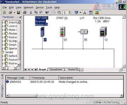这部分主要实现简单的DeviceNet网络的配置组态,使用的工具是Rockwell提供的软件——RSNetWorx。例子虽然简单但期望各位网友以一当十,达成更复杂的应用,此才为此文章的最终目的。