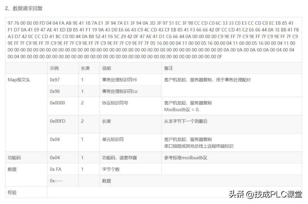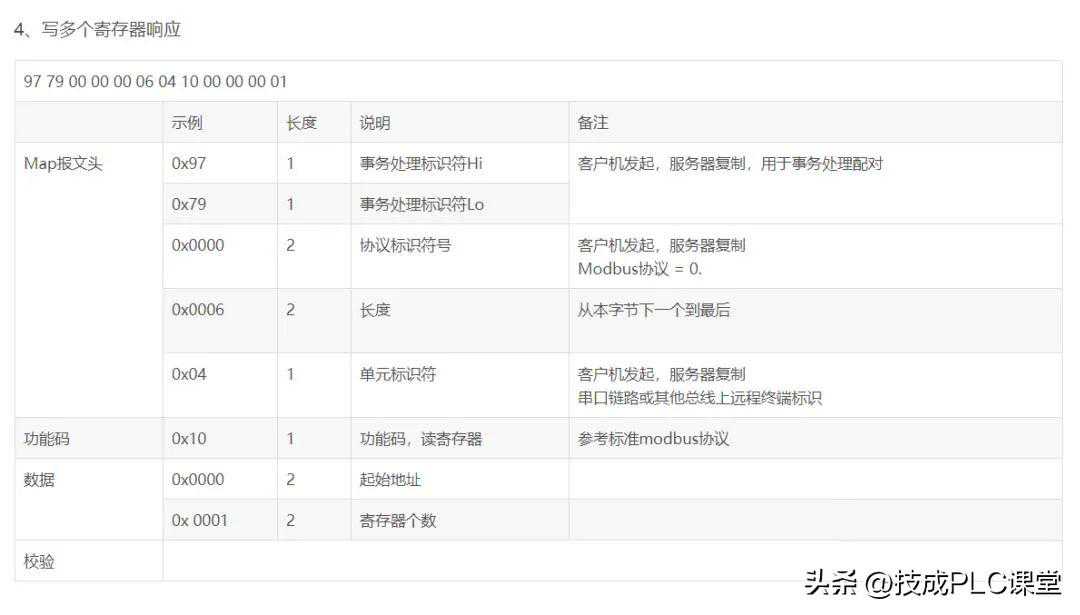 响应:MBAP功能码起始地址H起始地址L寄存器数量H寄存器数量L(共12字节)