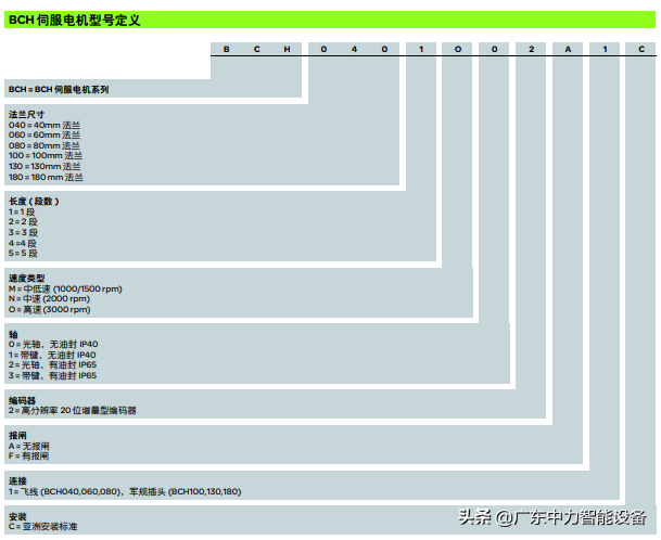 6个法兰尺寸(40,60,80,100,130,180mm),3个惯量范围(低,中,高)