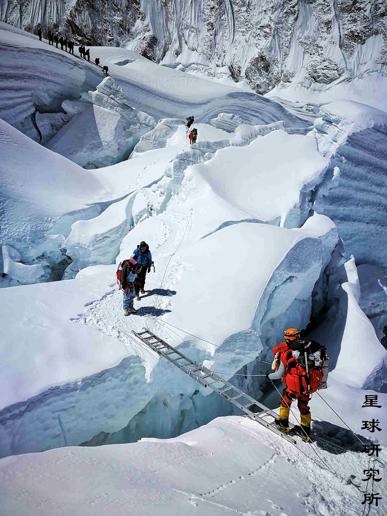 昆布冰川,排队慢慢过,小心别掉进裂缝了