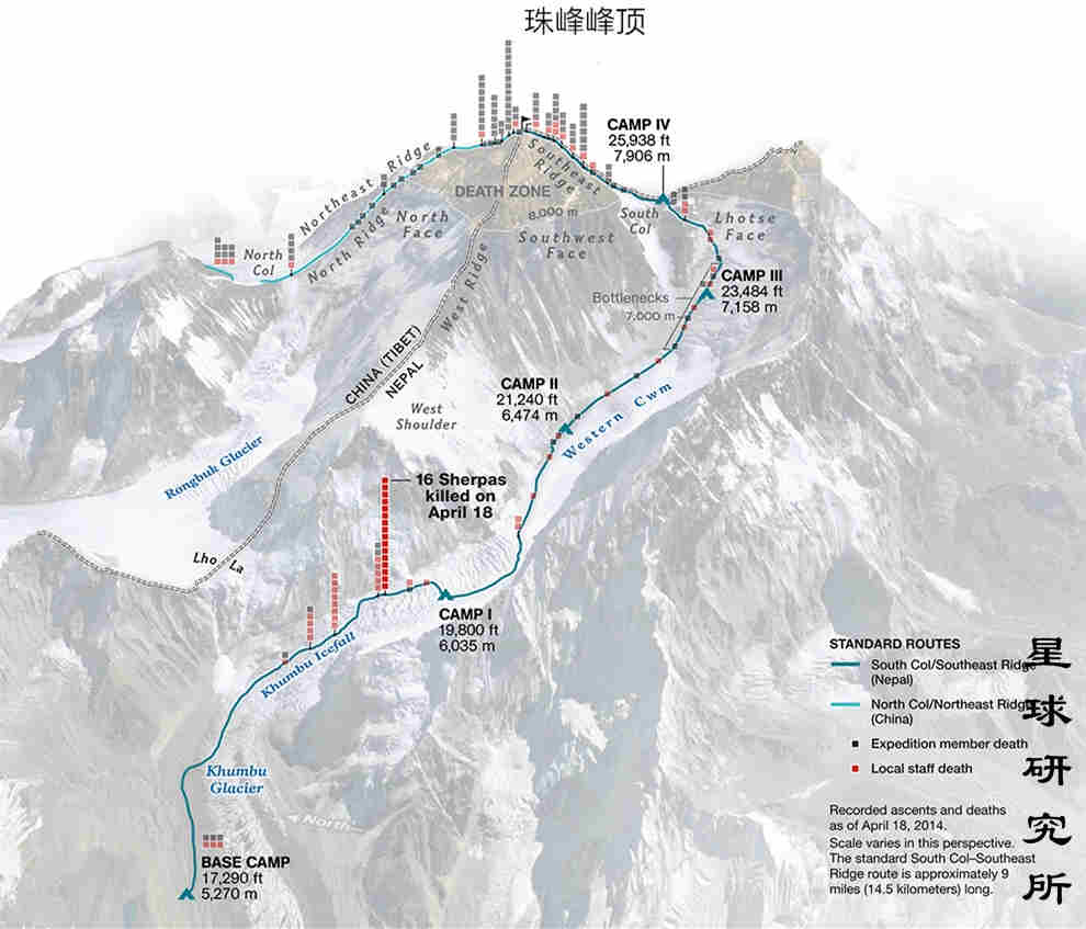 我们以攀登者最多的珠峰南坡传统路线为例