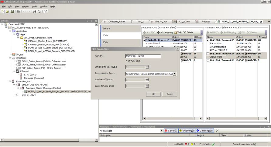 本例中PDO的数据传输模式使用了定时循环发送方式(异步,类型255),也可根据自己需要选择其他模式。