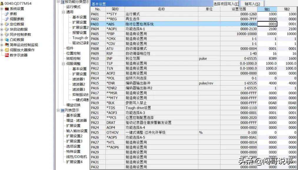 在智能功能模块中(QD77MS系列)根据机械配置不同设置好相应的参数