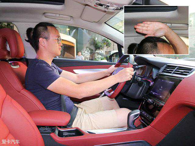 体验者身高为172cm,坐在DS4S驾驶室前排并将座椅调至最低后,头部空间还剩一拳左右的空间。