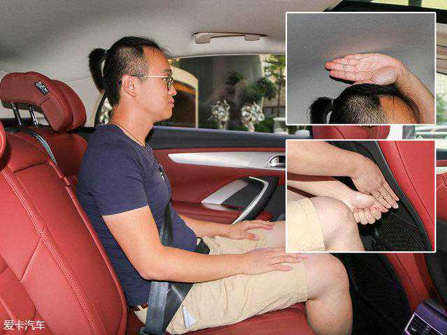 保持前排座椅不变,同一位体验者来到后排。此时他的头部空间为一拳,腿部空间为一拳三指。
