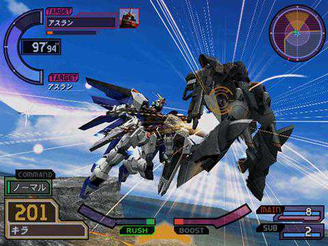 UC纪元那样光束剑直来直去地砍似乎也有些背离《高达SEED》的年轻味儿,在《联VS扎》里每台机体的格斗武装也都有了更加丰富的动作,而根据什么都不按进行格斗、按↑+格斗、按←或→+格斗、↓+格斗、BD中按格斗等不同操作,机体也会发动N格、前格、横格、后格、BD格等不同的格斗动作,在格斗动作里穿插其他的格斗动作还会引发不同的格斗派生。