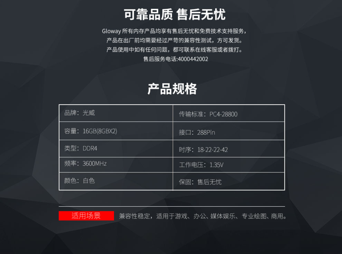 内存不用纠结,DDR4也已经降得非常便宜得情况了,所以这次直接选用了2条3600频率的光威天策,只要299元