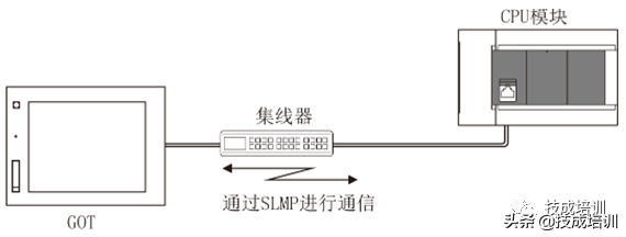 使用集线器(交换机、路由器),可以连接CPU模块与多个工程工具、GOT。1个CPU模块最多可以同时连接8台外部设备(8个通道)。