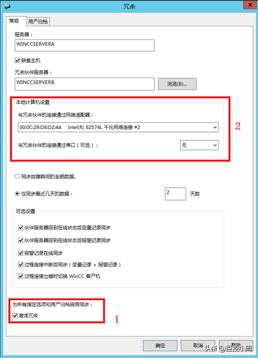 打开冗余配置选项,选中“激活冗余”复选框,如图3标识1所示。