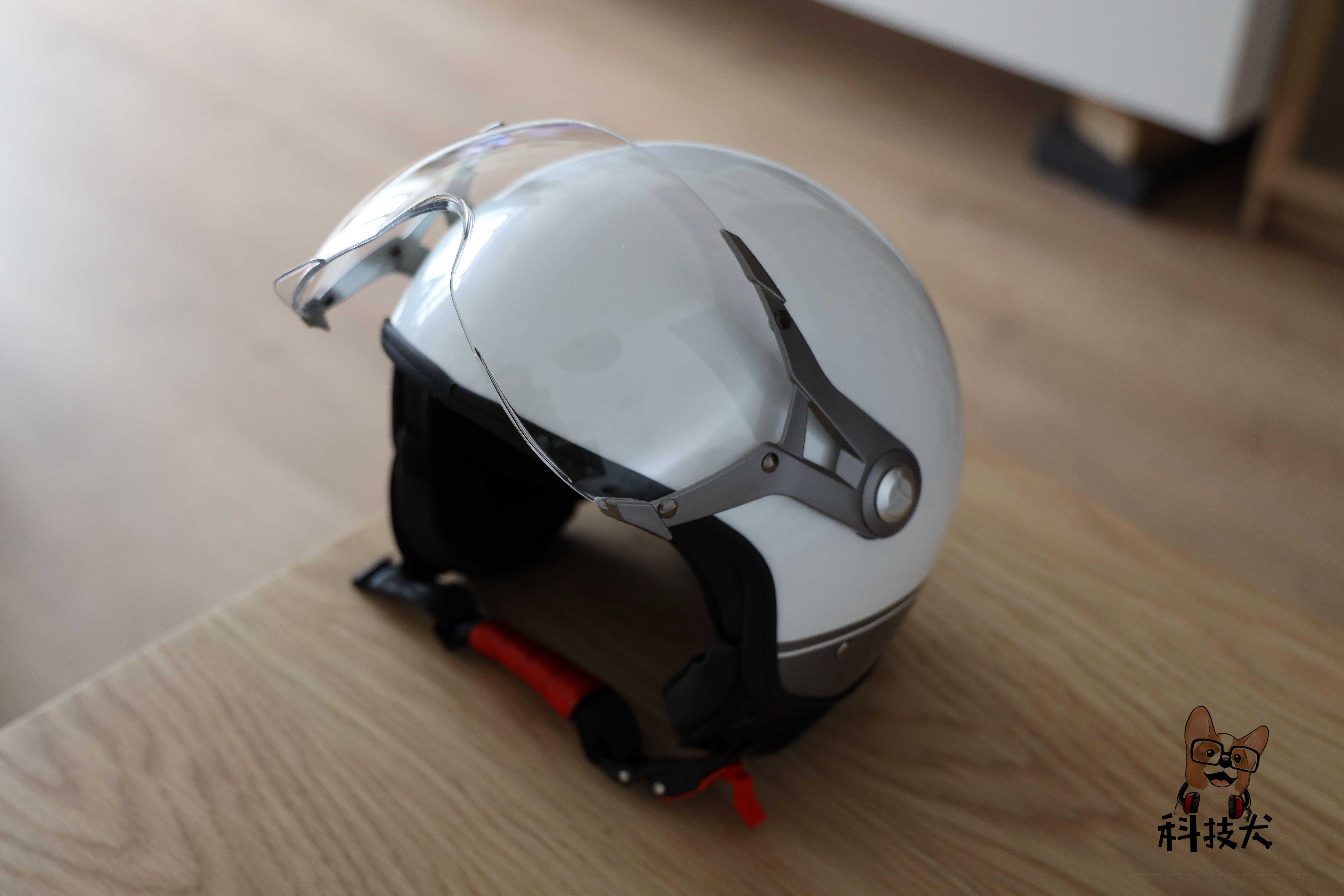 科技犬入手的是白色版本,这样夏季佩戴的话不会晒的太热,九号电动车头盔采用了经典的半盔设计,配备了滑盖式风镜,可以说收放自如,可拆式的内衬套件易于清洗的同时还能起到防止漏风和头盔晃动的作用,将骑行的安全性和舒适性进行了更好的协调。
