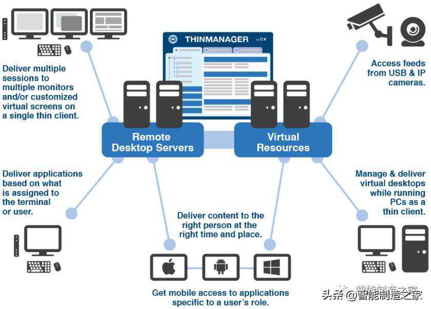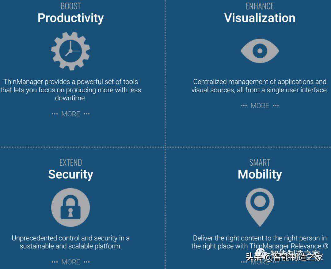 组态和协作软件中包含ThinManager、FactoryTalkNetworkManager、FactoryTalkAssetCenter、FactoryTalkTeamONE。ThinManager是面向自动化网络的软件解决方案,可针对每个PC、瘦客户端、移动设备和用户安全集中地配置和部署应用程序和内容。