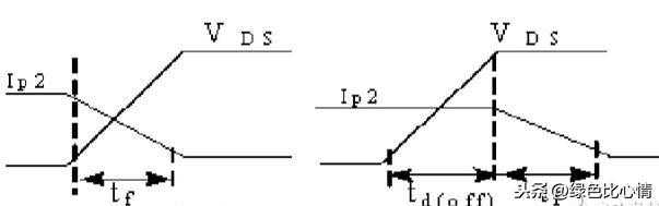 IDS(on_)=Ip2,电源使用中这一参数往往是激磁电流的末端值。因漏感等因素,MOSFET在关断完成后之VDS(off_beginning)往往都有一个很大的电压尖峰Vspike叠加其上,此值可大致按经验估算。
