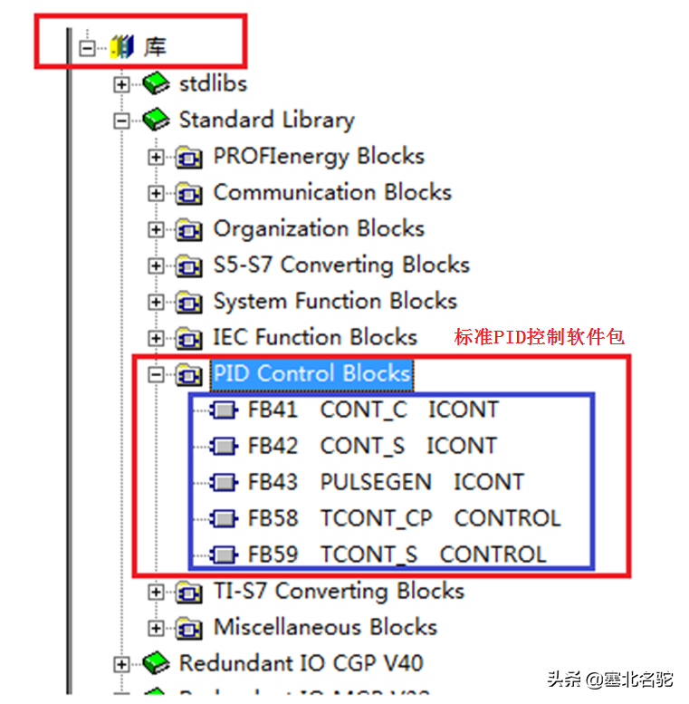 标准PID控制(StandardPIDControl)软件包提供了5个用于闭环控制的功能块,FB41-FB43、FB58及FB59,如图2所示。