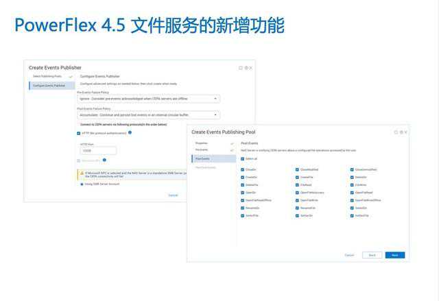 事件分发代理方面,内嵌了CEPA,其主要功能是把一些异常的事件、日志分析发送到具有常见失误处理能力的终端,从而检测是否存在勒索文件、隐藏文件或者进行索引编排、分析等等,值得一提的是,该功能实际上是从DellPowerStore全闪智能阵列上移植而来的,这在一定程度上也反映出了戴尔科技在技术方面的共通性。