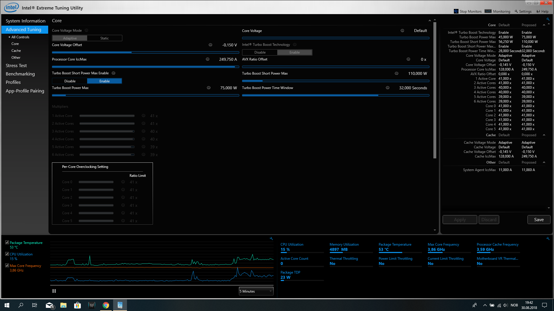 通过IntelXTU软件,即ExtremeTuningUtility,可修改处理器的PL1、PL2、Tau等参数。