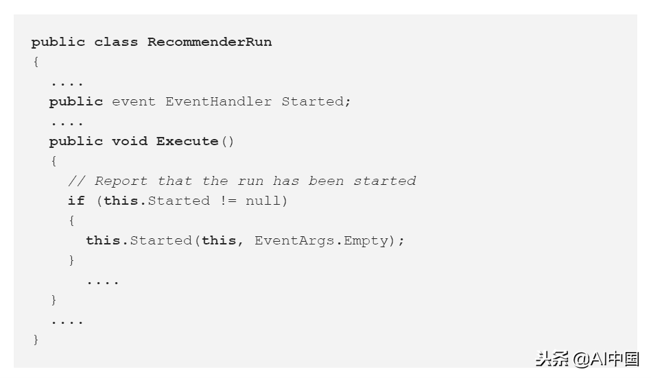 事实上,在检查null不等式和处理程序调用之间,如果在测试null和调用事件处理程序之间,事件没有订阅者,将抛出NullReferenceException异常,则会发生事件取消订阅。例如,要避免此类问题,可以将对委托链的引用保留到局部变量中,或使用"?"运算符来调用处理程序。